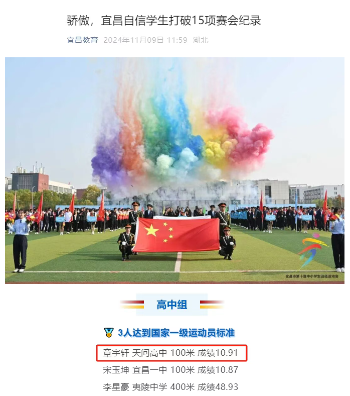 体育健儿凌云志,勠力同心书光荣。11月3日,宜昌市第10届中小学生田径运动会落下帷幕。天问高中代表队喜获1银1铜和10个4至8名的好成绩。令人欣喜的是...