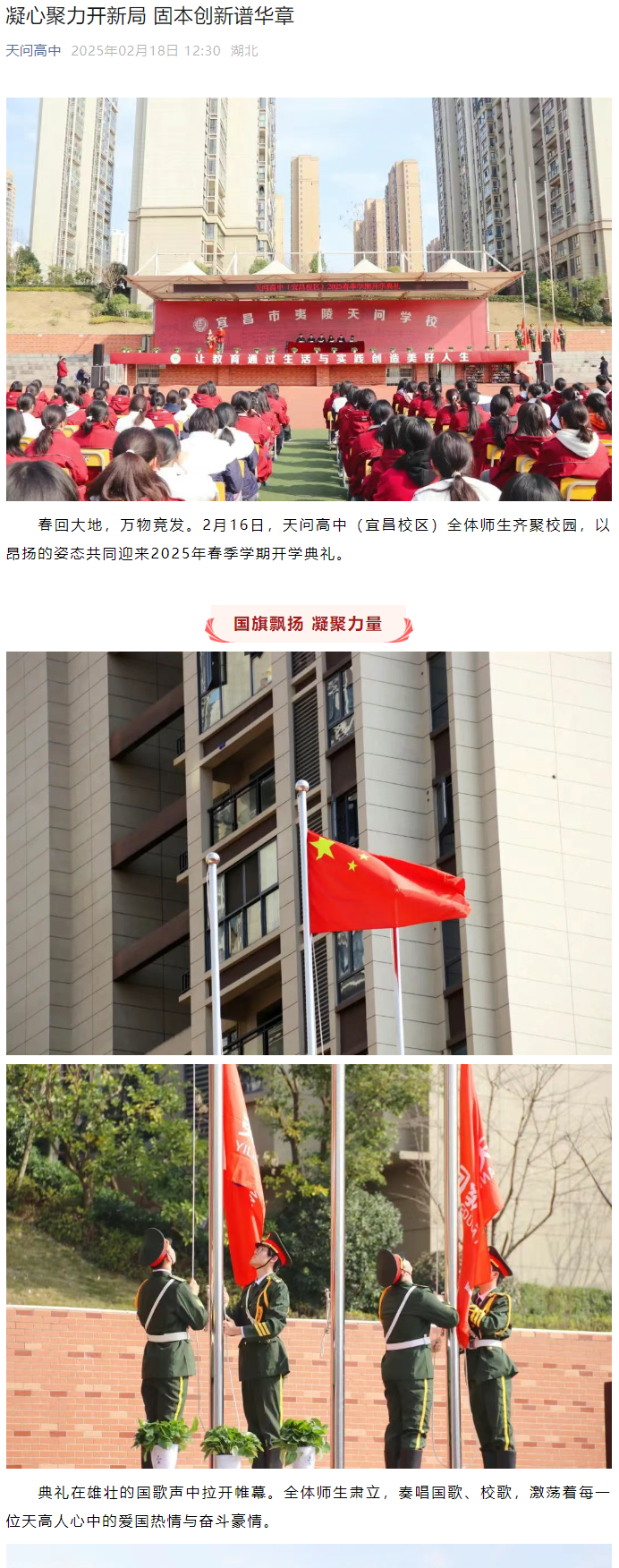 春回大地,万物竞发。2月16日,天问高中(宜昌校区)全体师生齐聚校园,以昂扬的姿态共同迎来2025年春季学期开学典礼。...