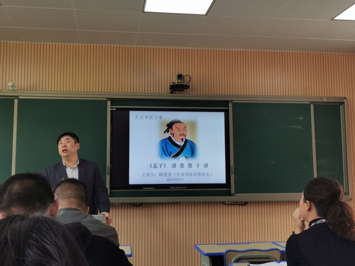 3月17日,天问书院顾景荣院长为书小全体教师进行孟子讲座第十讲。顾院长娓娓道来,现场各位教师聚精会神地聆听,认真地记录《孟子》精髓。...