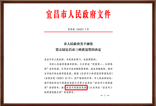 天问集团创办20多年来,先后获得全国首批特色示范学校、全国五四红旗团支部、首批湖北省五星级民办学校、宜昌市文明单位、首届宜昌市教育质量奖、宜昌市三峡质量奖提名奖等荣誉。
