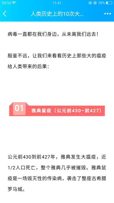 历史学科谭争明老师以疫情为契机,更是将“人类历史上的10次大瘟疫”搬进历史课堂,每节课前,谭老师组织学生们了解人类与病毒“相爱相杀”的史实,通过数据对比,带给学生以心灵的震撼。