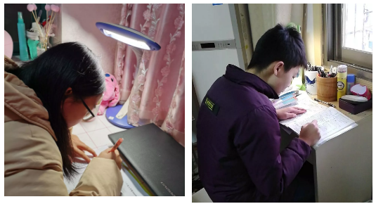 书初905班的秦彬彬的妈妈和吴峰锐的爸爸都是公务员,春节以来都在为抗击疫情而努力。两个孩子在家能够自觉合理安排好学习生活。