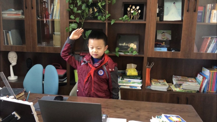 上午9点整,全体师生准时打开二维码,通过线上视频的方式举行升旗仪式。本次升旗仪式天问国际小学丁柯文同学主持,师生家长们纷纷面朝屏幕肃立,虽然大家都是各自在家,但仪式感依然满满。