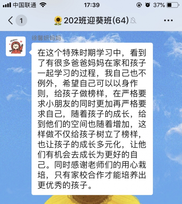 很多家长朋友纷纷在班级群内,留下自己的感恩与祝福。