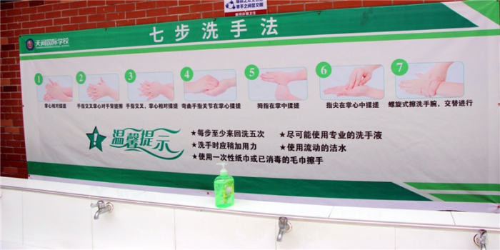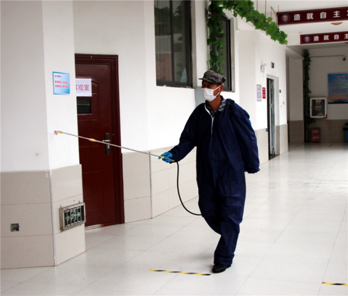 完善“两案十二制”,周密部署,措施齐全;消毒水、额温枪等物资准备充足;教室、寝室、公共区域全面彻底消杀;防疫提示语、紧急状况应急处置流程等随处可见……