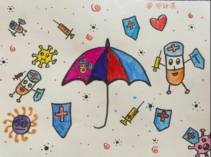 一场突如其来的疫情让前线告急,我们虽然不能上前相助,只能用手中的画笔给他们加油鼓劲,宣传防疫小知识!但我们相信,只要和叔叔阿姨团结一心,就一定可以战胜疫情,加油!