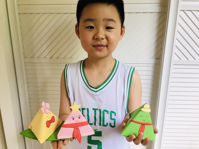 根据各年级孩子们的年段特征将端午文化和数学知识相结合,进行图形认识、分类学习,将端午相关的数学知识进行整理、归纳、做成数学小报来感知手中的粽子,体验身边的数学。