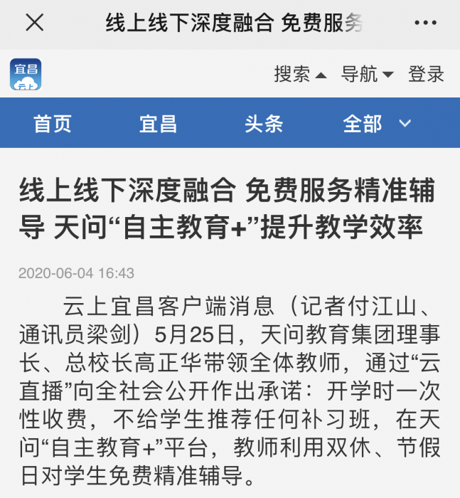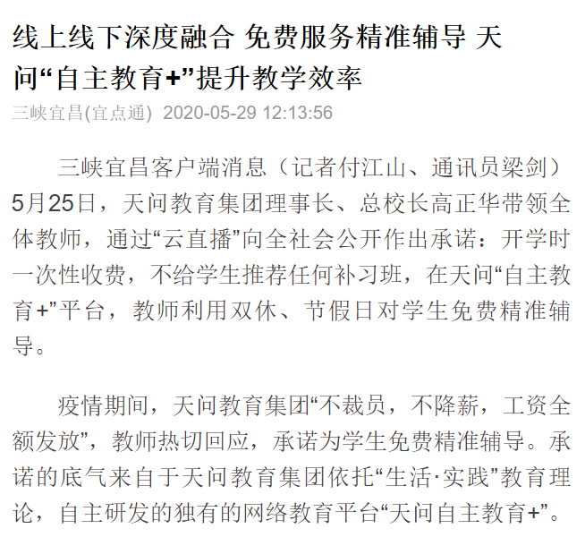 等中省媒体陆续聚焦天问教育集团《宜昌天问:做理想纯洁有担当的教育”》