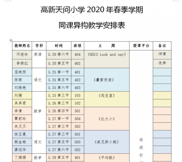 通过这次“同课异构”的活动,老师们已熟练掌握线上教学的相关技能,并在集体的智慧中,突破重难点,更新教学方法。