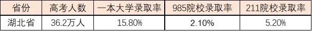 据统计,2020年湖北共有39万余名学生参加高考,理工类达本科一批线的共54896人,文 史 类 达 本 科一 批 线的共12571人,即仅17%的学生达到一本线。参考2019年数据,我们不难发现考生达到一本线≠录取一本,实际能够就读一本院校的学生将更少,更不用提985/211大学了。