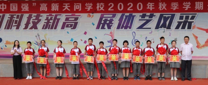 开学典礼上还举行了隆重的2020级新生奖学金颁发仪式,12名同学荣获特等奖,11名同学荣获新生直升优胜奖,33名同学荣获一等奖,67位同学荣获二等奖。按照天问教育集团的奖励标准,特等奖获得者自9月1日起三年学费全免;直升优胜奖奖励5000元;一等奖奖励5000元;二等奖奖励3000元。