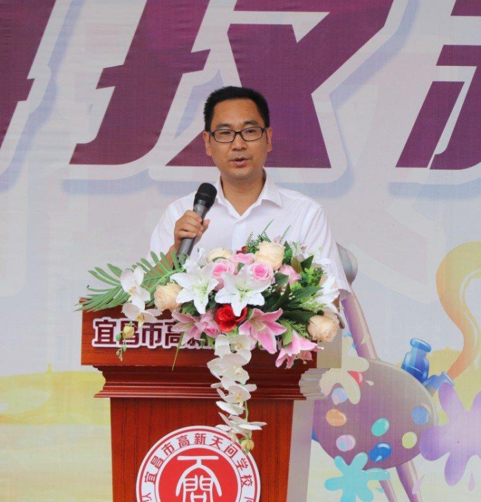 高新天问初中执行校长廖圣东为新学期开学典礼致辞,他说,过去的一学年,全体师生同心协力,开拓创新,喜获2020届初三中考、初二生地会考大捷,再创新初中考新辉煌。新的学期他给学生提了五点希望:“誓以我命固我土”,做一个热爱祖国的人;“善医敢言士无双”,做一个胸怀大志的人;“忠于所爱笃定行”,做一个坚守梦想的人;“节约粮食懂珍惜”,做一个践行文明的人;“少年强,中国强”,做一个热爱科学、勇追梦想的人;并希望全体学生珍惜时光,奋勇前行,努力拼搏,做德智体美劳各方面全面发展的好学生。