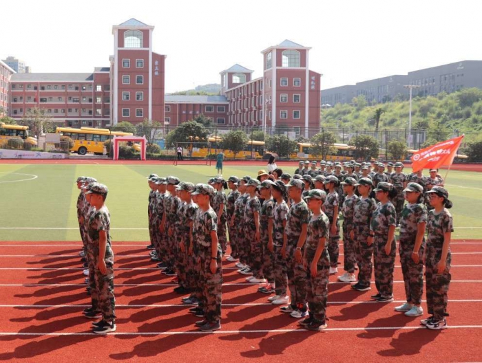 为了磨炼学生的意志,培养学生团结拼搏、勇于进取的奋斗精神,宜昌市高新天问初中七年级新生进行了为期4天的军训,并于9月4日上午举行了拓展训练会操展演。