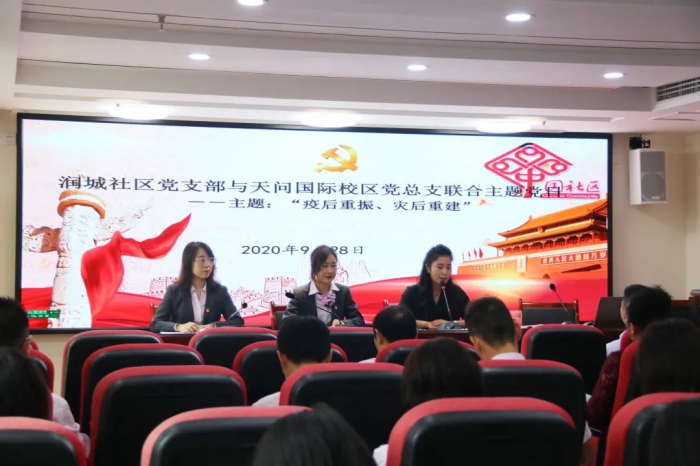为提升党建引领基层治理水平,推动学校与社区互联互动、共驻共建,9月28日,天问国际校区党总支与润城社区党支部联合开展了主题党日活动,并签署了《共驻共建协议》。