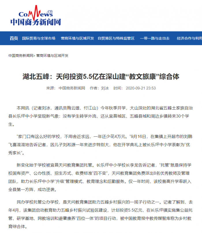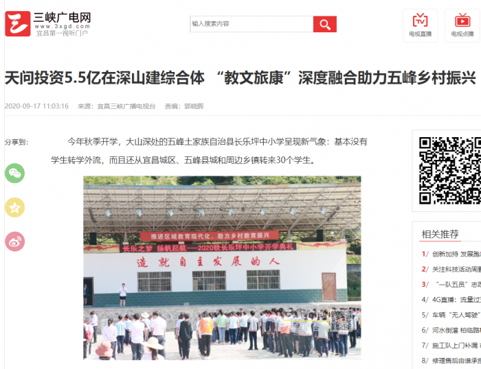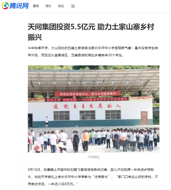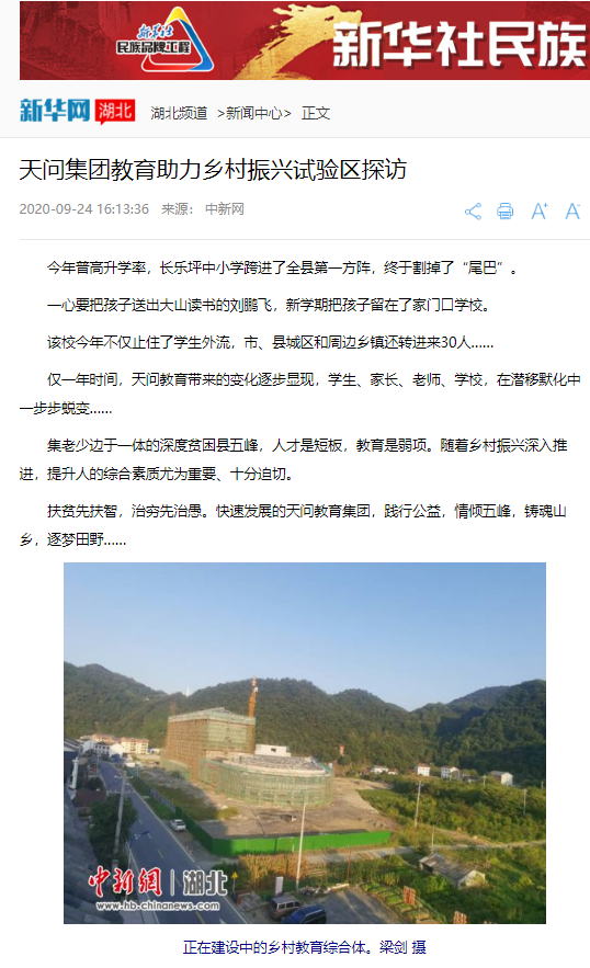 9月24日,新华网刊发文章《天问集团教育助力乡村振兴试验区探访》再次聚焦天问。