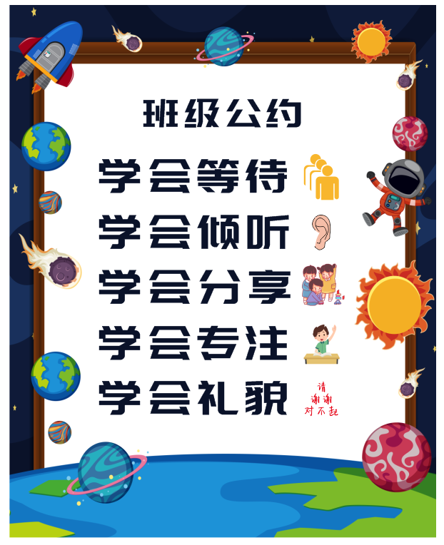 设计之初,我对教室内文化墙的栏目首先进行统筹设计。栏目从学科展示、评比竞赛、规章制度、知识拓展等多个方向进行设计,栏目名称尽量与班级整体设计契合,设计所有栏目的时候要考虑到参与展示的人员,尽量照顾全体学生,涉猎不同学科。