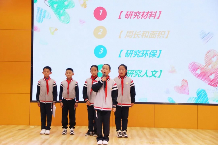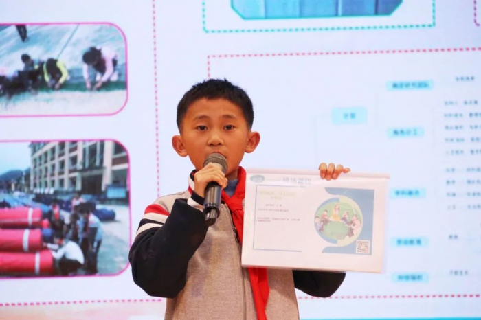 一群小朋友在天问老师的带领下,成立了研究小组,在观察记录操场修建的过程中,创新开发出了一系列操场课程,学到了材料知识、数学知识、环保知识和人文知识,锻炼了自主学习、自主探究的能力。分享会上,孩子们迫不及待地将自己的成果展示给老师们观看。