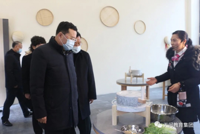 跟随讲解员的步伐,尔肯江·吐拉洪部长和参加调研的湖北省民宗委党组书记、主任马萍,宜昌市委常委、市委统战部部长王均成等走进天问“生活·实践”研学基地的8大课程馆,一一了解非遗文化馆、中药材馆、手工糖馆、木器馆等场馆的文化构建、活动创设。