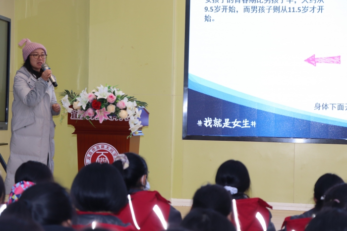 本次讲座由学校课程中心德育副主任向丽华主讲,她详细讲解了青春期的一些生理和心理的变化,并引导学生正确认识自己的身体变化;还讲解了青春的一些卫生保健知识,并给每个女生发放了卫生护理品。希望每个女生都能健康快乐地度过青春期,成长为自信美丽的女孩子。