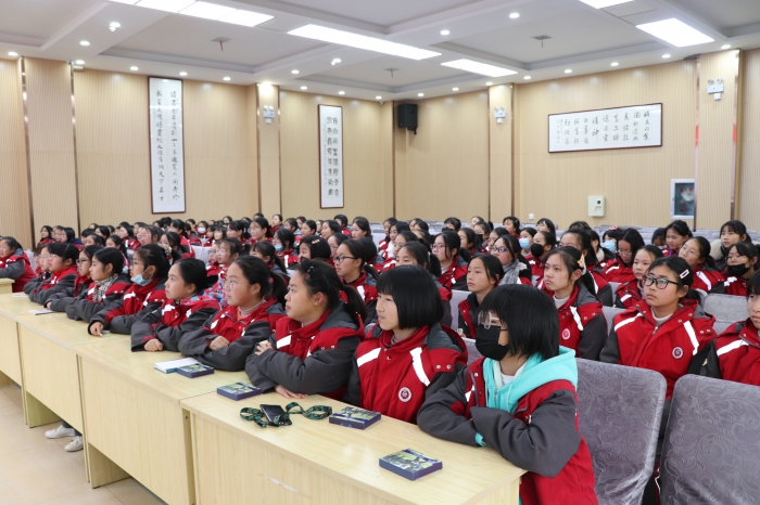 为了帮助处于刚刚步入青春期的初中女生认识青春期,了解青春期的变化,更好的认识自己,学会与同学正确的相处,把握与异性交往的尺度,快乐的度过青春期,并贯彻落实全省卫生与健康培训会议精神,12月14日下午,高新天问初中开展了以“青春小课堂”为主题的女生健康教育知识讲座。