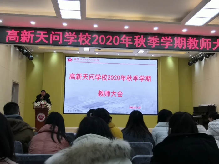 教研组:相伴求知 和谐共进 当天,还召开了2020秋季学期教研工作总结大会,各教研组长分别从日常教学,集体教研、青年教师培养、团队建设,学科组所取得的成绩和存在的不足,对新学期的展望等方面进行汇报,学科组长的回顾与分享各具特色,各有精彩。 教师:辛勤耕耘 收获喜悦 1月25日,高新天问初中全体教师进行了个人述职。老师们分别从工作岗位、工作过程与成绩、经验积累、反思改进等方面总结了本学期的工作。 在教书育人的道路上,老师们辛勤耕耘,付出了汗水与心血,同时也收获了充实与快乐。老师们纷纷表示,将一如既往用心去教诲学生,希望在以后的工作中发扬优点,克服不足,总结经验教训,使教学工作更上一层楼。 1月27日,高新天问初中召开2020年秋季学期教师大会,各部门负责人总结了本学期的工作,展望新学期的目标。 学校课程中心教学副主任杨开平总结汇报,本学期课程中心教学处围绕学期初拟定的计划开展工作,重点突出三个“聚焦”:聚焦过程,聚焦课堂,聚焦教研;落实三个“抓实”:抓实过程、抓实教学、抓实教研,实现师生共同发展。 政教处:春风化雨 润物有声 德育工作是一个学校的灵魂,是学校良好风貌的有力保障。学校课程中心德育副主任向丽华主要从八个方面总结了本学期的工作:培养规则为抓手 良好习惯促成长 ;自主管理上台阶 薪火相传代代新;学校安全无小事 各种举措保平安;缤纷活动展风采 德育阵地处处在;他山之石可攻玉 比赛分享促成长;稳步推进好传统 “完美”标准入人心;家校共育成合力 有效沟通明方向;驻足回首勤反思 昂首阔步新征程。 校务中心:克难奋进 扎实创新 校务中心主任向端总结汇报,本学期校务中心始终围绕开学初提出的“四好”来定位开展:为学校发展做好参谋,为校长工作做好助手,为部门工作做好护航,为同事做好服务。 本学期对照计划,在推进卓越绩效管理、精细办会传达、协调督办、教师研修、招生工作、宣传工作等6个方面,顺利完成了本学期的工作。 后勤处:服务精细 安全可靠 后勤工作也是办学的基石,是教育教学的重要保障。本学期,后勤处服务精细可靠,健全了学校食品安全责任制度;定期学习安全知识提高认识;迎接各级检查情况良好;严格管控食品原材料采购、加工、制作等环节环节、过程;做好各项服务工作,为广大师生员工创设了安全健康的环境。 学校:务实创新 奋勇争先 初中部执行校长廖圣东在总结中说,2020年秋季学期,高新天问初中在集团和上级教育行政部门的领导下,以安定、扎实、坚持、创新;做人踏实、做事扎实、创新落实的集团卓越绩效工作要求,勤奋工作,奋勇争先。 这学期,学校卓越绩效落实到位,对比《2020—2021学年目标责任书》责任目标,学校各项指标均基本完成达成。 常规教学过程扎实,工作紧紧围绕常规落实,学生受益,家长满意等项目开展工作,具体完成事项30余项。 德育活动规划系统,坚持构建自主发展生态氛围,围绕自主发展规划德育主题,继续狠抓行为习惯。 教师团队教研务实,建设一流的教师队伍。打造一批在市区级有一定影响力的研究型教师,在2020年秋季学期中,共有31项教科研成果,26名教师参加区级比赛并获奖,9名教师获宜昌市级优质课奖;师德师风违禁率为0,重大安全事故率为0,上级文件落实率、工作完成率100%。 举首回望,感慨万千; 过去的一学期 高新天问初中全体教职工 心中有爱 ,感恩以待; 心中有梦,励志前行; 心中有光,担当有责 ; 展望新学期,斗志昂扬,未来可期!