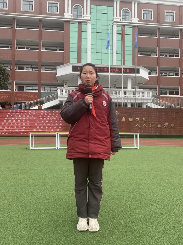 603班张宝琳同学以假期生活为主题的演讲带领着同学们回望了充实而愉悦的寒期。春天是付出努力的季节,只有在春季播下希望的种子,才会在秋季换来丰硕的硕果。让我们共同扬帆启航,载着美好的理想乘风破浪,驶向成功的彼岸。