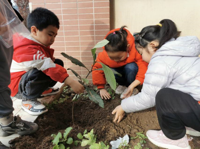 点军天问幼儿园探寻B班的小朋友带来了小种子和小树苗,孩子们兴高采烈地开始实施自己的播种计划,松一松土,挖个小坑,把种子埋起来。再浇点水,期待小种子赶快发芽长大。孩子们还是种树小达人,叫上伙伴,带上工具,种下一棵树,等待它成长。