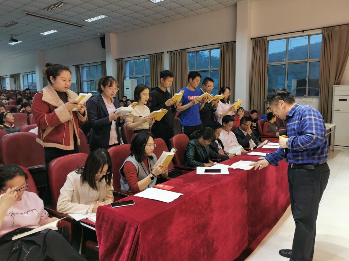 2021春季学期,书院小学全体教师开启了春季学期听读一本经典之读《孟子》的活动,此次活动特别邀请了集团国学大师顾景荣院长给老师们进行系列讲座,给老师们现场指导,指点迷津。 4月15日,天问书院小学师生共聚大礼堂,聆听顾院长《孟子》大讲堂第二期,献礼四月读书节,品读国学经典,弘扬传统文化。