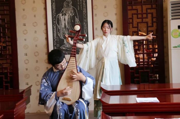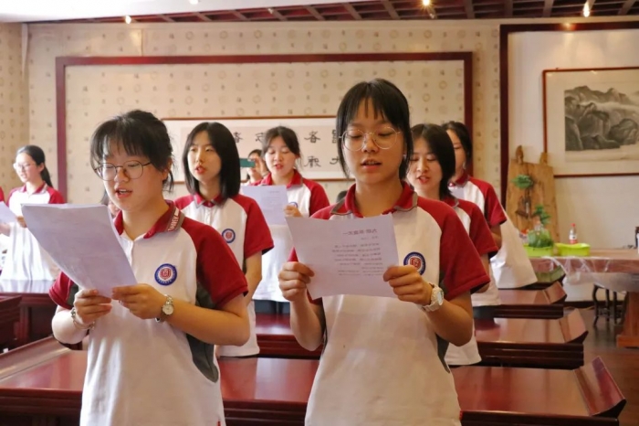 现场,同学们一起诵读了屈原经典诗篇《东皇太一》。情感真挚,声情并茂的朗读也感染了客人们,大家忍不住一起大声诵读起来。