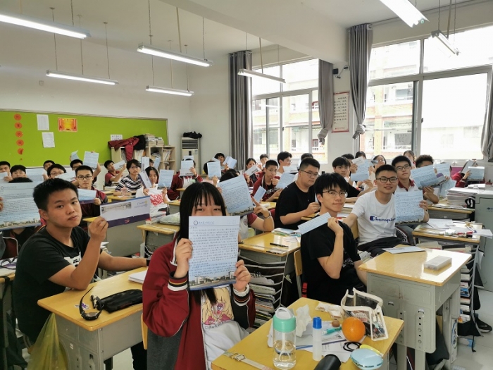 6月3号,天问高中2019届毕业生刘芊芊组织湖北第二师范学院“心灵信使”团队的成员,为母校高三三百余名学生每人手写了一封信,在信中鼓励大家不惧挑战,轻松应考。