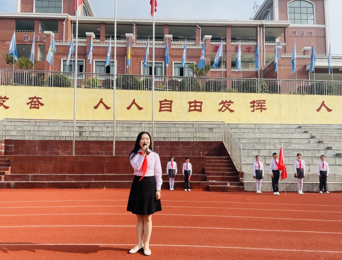戴上红领巾的新队员们,高举右拳,面向队旗,庄严宣誓:“我是中国少年先锋队队员,我在队旗下宣誓,我热爱中国共产党,热爱祖国,热爱人民,好好学习,好好锻炼,准备着:为共产主义事业贡献力量!”响亮的誓言在校园回荡,在队员们心中澎湃,时刻鼓舞着新队员们朝着未来和理想努力奋进。
