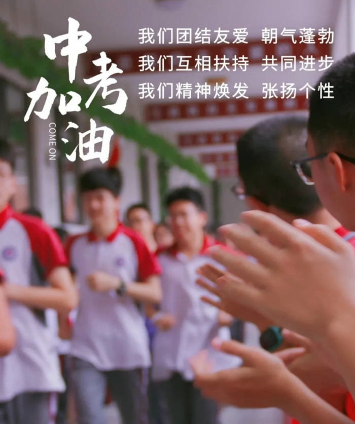 整场活动在鼓舞人心的校歌中拉开帷幕,教师代表和七八年级学生代表依次站在教学楼走廊两侧,构成了一个“加油赛道”,中考考生们则从“赛道”起点跑至终点,他们意气风发、自信满满。“相信自己,超越自我”“天问加油,中考必胜”的助威口号声与大家的掌声交织在一起,现场温情满满、暖意浓浓。