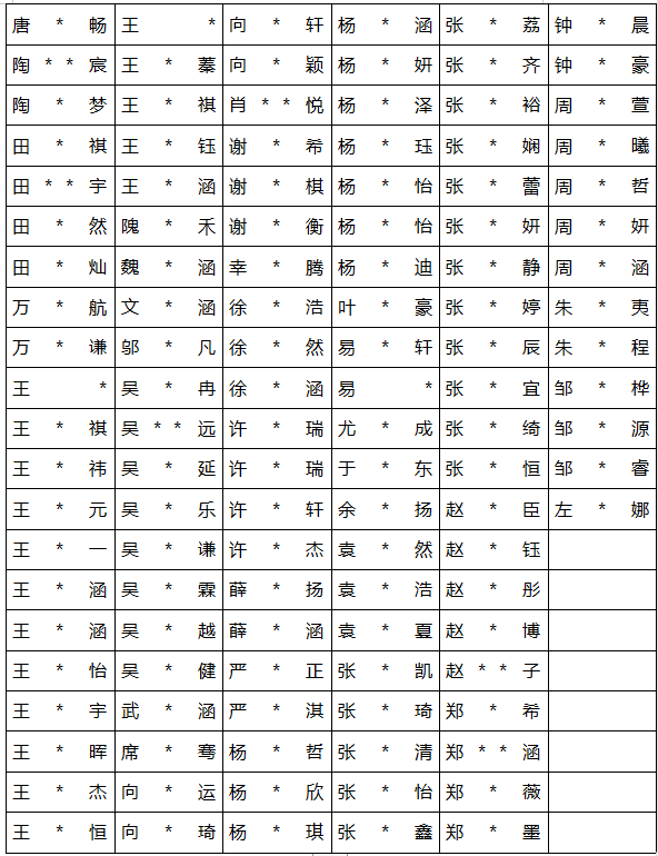 天问书院小学 2021年秋季一年级新生录取名单