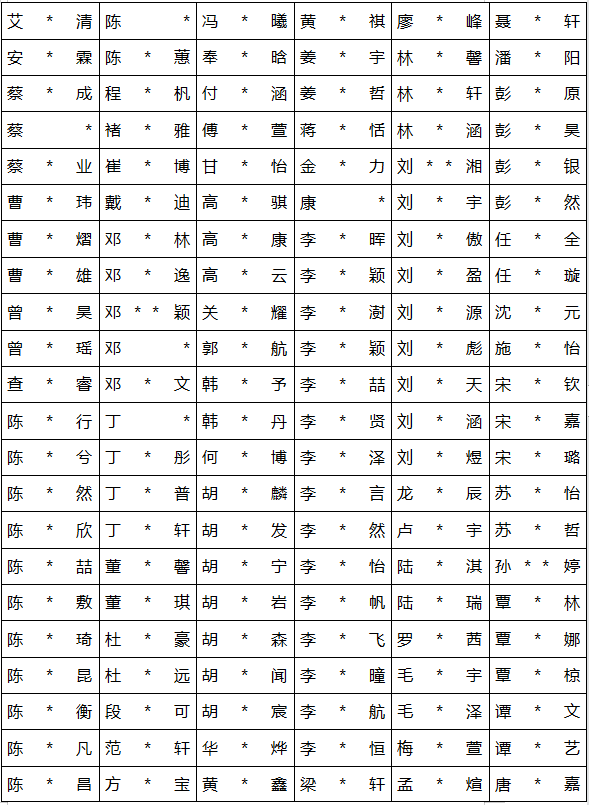 2021年秋季学期高新天问初中七年级新生录取名单