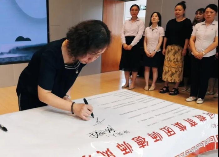 师德建设是教师工作的核心内容,“师者,以德为先”。全体教师在宜昌天问学校党支部书记韩亚飞的带领下,举起右手,庄严宣誓,承诺书从爱岗敬业、关爱学生、为人师表等方面对教师提出了要求。紧接着,老师们在师德师风承诺书上郑重地签下了自己的姓名并庄重地按下手印。