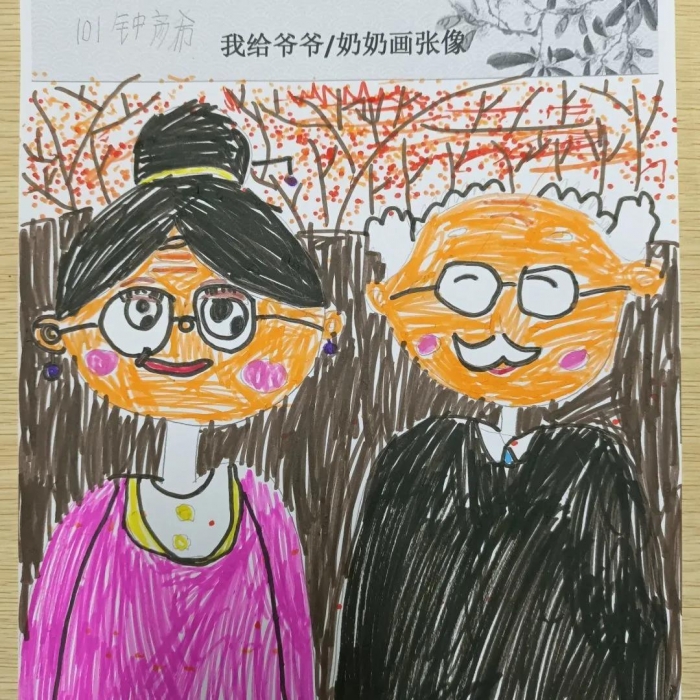 一二年级的小书宝用稚嫩的双手,一笔一画勾勒出勤劳的爷爷、善良的奶奶,将浓浓的恩情厚植于多彩的画笔中,肆意描绘血浓于水的祖孙情。
