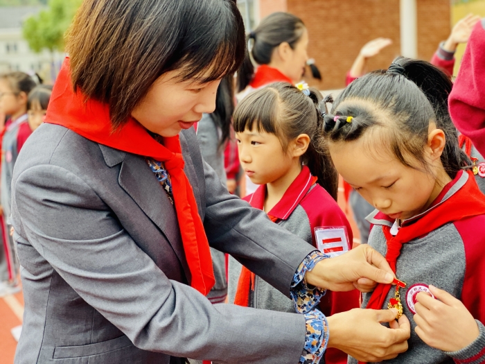 本次活动二年级共100名同学加入了光荣的中国少年先锋队,成为了一名少先队员。同时,为构建阶梯式成长激励体系,增强少先队员的光荣感。自上学期起,我校大队部积极探索,认真落实“定章、争章、考章、颁章、护章”一星章“进阶五部曲”。经过层层推荐,筛选,考核,本次共有125名优秀少先队员获得“红领巾奖章”个人一星章,五个中队获得“红领巾奖章”集体一星章。