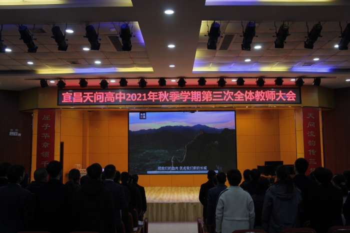 学期过半,为及时剖析、反思近期教学情况得失,进一步做细、做实教育、教学及管理等各项工作,强化全体教师的工作责任意识,提高认识、统一思想、凝聚人心、汇聚力量,11月29日上午,天问高中2021年秋季学期第三次全体教师大会在国际校区橘颂厅召开。会议由天问高中校务中心曾荣主任主持,天问高中全体教师参会。宜昌天问高中王少斌校长、杜可副校长、邹伟副校长出席本次大会,并发表讲话。