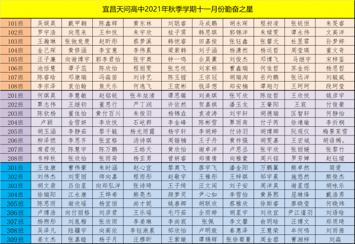 天问高中2021年秋季学期十一月勤奋之星