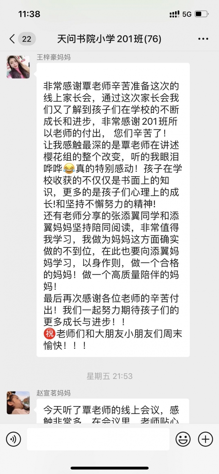 家校共育云相聚,隔屏亦走心。家长会后,家长们对老师们的辛勤付出深表感激。这一场云端之旅见,隔空不隔爱。因为孩子,我们相识、相知。为了孩子,我们成了教育的合伙人。