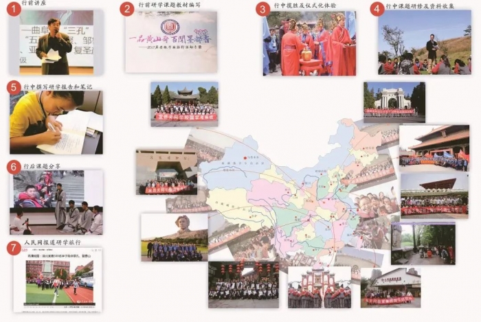 研学课程。学校研学课程的路线包括巴楚文化线、闽南文化线、中原文化线、关中文化线、荆楚文化线等。研学主题包含人文类、科学类、艺术类等。在研学前的行前课、准备课、预设课中,学生通过查找资料,观看相关影像,提前做足功课。在研学中,鼓励学生主动担任讲解员,自行组织研学总结、复盘活动,并相互分享研学攻略。