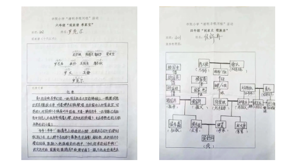 1.每年清明节,学生通过“书姓名、绘家亲、访族亲,闻家史,观家谱,传家训,正家风”等活动探寻自己的姓氏来源、家族渊源、家风家训,引导学生了解家庭、家族、家风,从而爱家人、爱家庭。