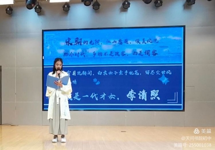 寻寻觅觅,半世烟雨落花。短短5分钟,804班徐妍琪将李清照这位“千古第一才女”半世浮沉的经历、清丽婉约的词风呈现在大家面前。