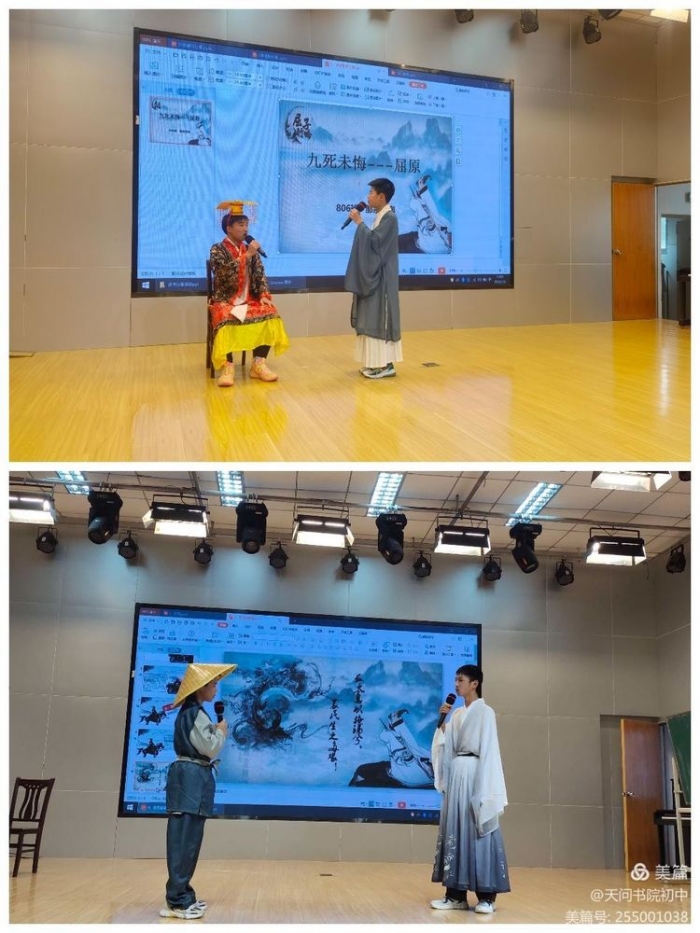 几千年来,屈原的精神一直鼓舞着华夏子孙,天问师生如今也接过传承的一棒,站上舞台与大家共同分享自己的感悟与思考。