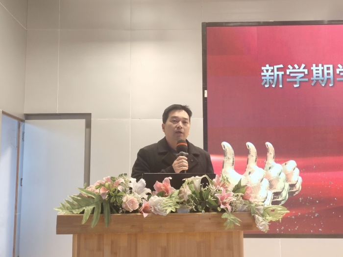随后,天问书院学校校长彭灿以《提升内涵创品牌 树立形象谋发展》为题分享了新学期学校工作计划,他以“自主教育内涵发展,自主课堂纵深推进,校本特色课程研发”为工作重点,从五个方面强调了新学期工作要求: