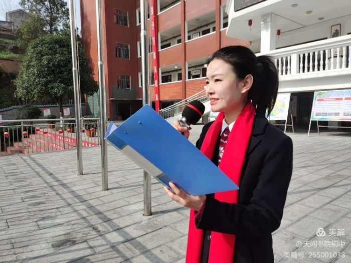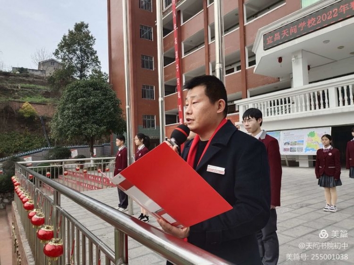 金牛辞岁,春风渐暖;瑞虎迎春,万物萌新。为营造浓厚的开学气氛,激励全校师生振奋精神,2022年2月21日,宜昌天问学校(书院初中)2022年春季第一次升旗仪式暨开学典礼在学校操场隆重举行,杨静老师担任主持。