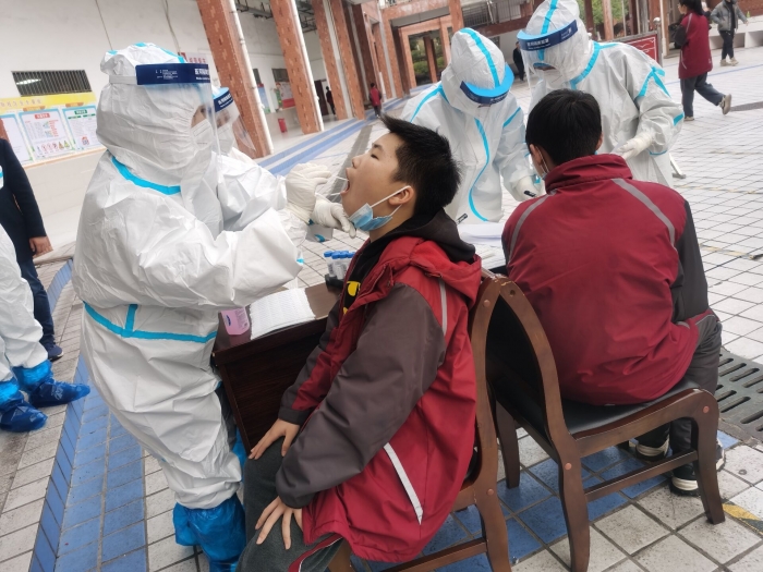 3月10日,在夷陵天问学校安全办的组织下,幼儿园、小学、初中、高中等各学部负责人及相关工作人员开展了一次核酸检测演练活动,以备疫情防控形式严峻时需要进行区域全员核酸检测。
