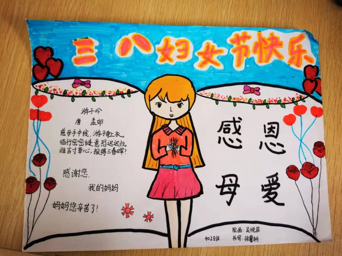 小书宝们有的用画笔描绘心中中的伟大女性,既有小英雄刘胡兰,也有辛勤工作的老师们,还有身边伟大的妈妈们;有的配上优美的文字,用手抄报的形式表达着对心目中伟大女性的敬仰,一笔一画,都诠释着他们心中的女性形象。