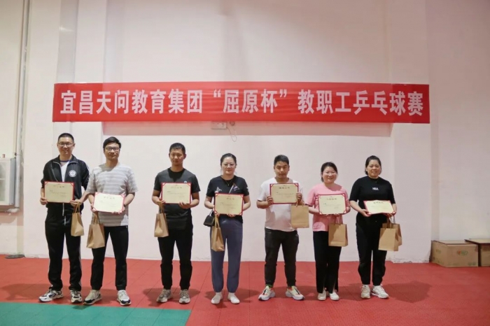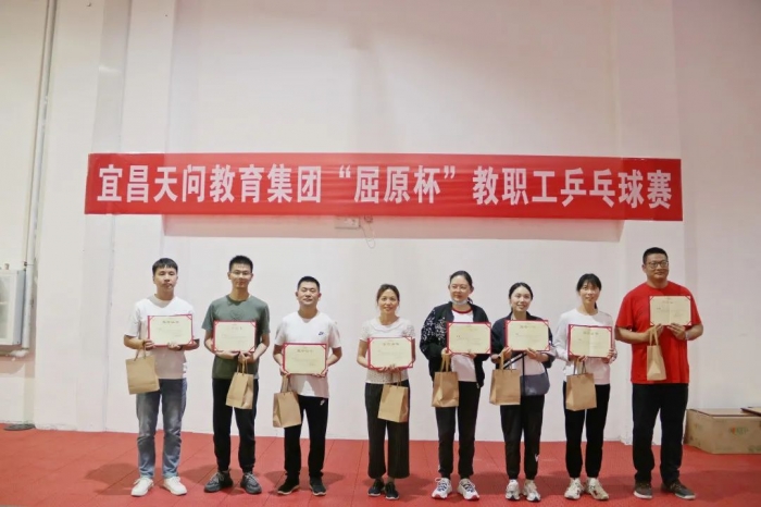 为了深入挖掘并弘扬屈原精神内涵,传承博大精深的屈原文化,丰富集团教职工课余生活,增进各校区教师友谊。4 月 13 日下午,天问教育集团工会举行了“屈原杯”教职工乒乓球运动会。