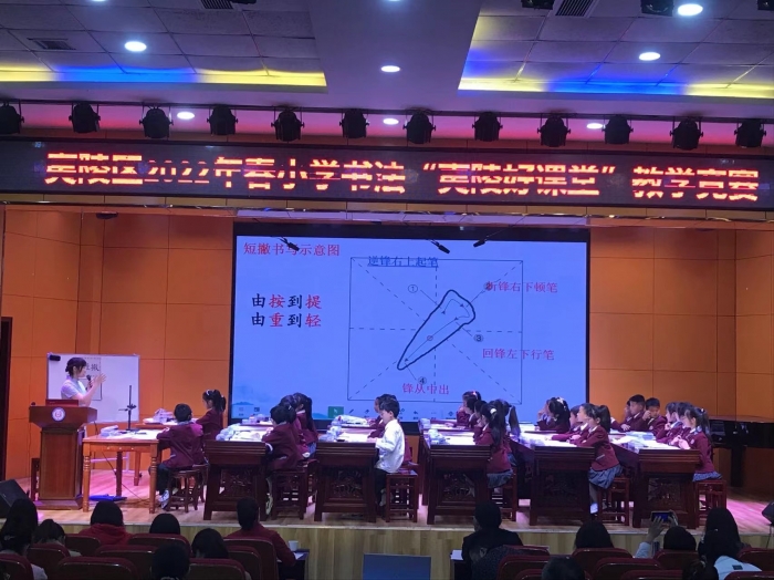 随后,贾文主任为本次活动做了深入的点评,贾主任认为,书法教学要入心入法、入情入境,读贴--说贴--学贴--练习--评价--修改 ,环环相扣,缺一不可。贾主任还对书法教学提出了建议,她强调书法教学和语文教学一样要深层,不仅仅是教会一个笔画、更是要教授孩子博大精深的传统文化,其次要让学生能在书法课上沉浸式学习,达到情感深层,让孩子高兴着你的高兴,快乐着你的快乐,设计的教学环节,要站在学生的立场,想学生之所想,让学生享受到传统艺术的美。最后贾主任寄语夷陵区书法教育,希望老师们可以加强书法课堂的研究,让书法这个文化瑰宝在夷陵这片土地上传承下去。